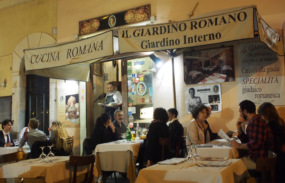 Kävimme kaksi vuotta sitten muutaman päivän matkalla Roomassa sukulaisporukalla. Ensimmäisenä iltana menimme syntymäpäiväillalliselle juutalaskortteliin eli Ghetton alueelle. Olin varannut meille pöydän Il Giardino Romano -nimisestä ravintolasta, joka on erikoistunut artisokkiin.