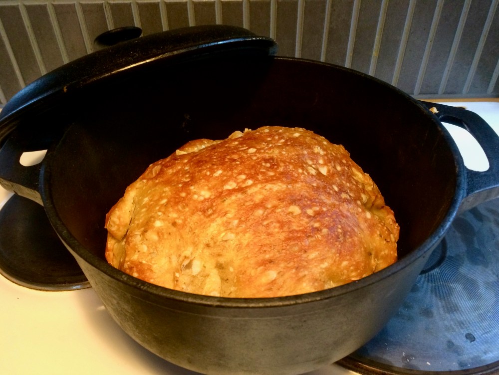 5. Ota kansi pois ja laske lämpötila 225 asteeseen. Paista leipää vielä 15 minuuttia, niin että sen pinta saa kauniin värin.