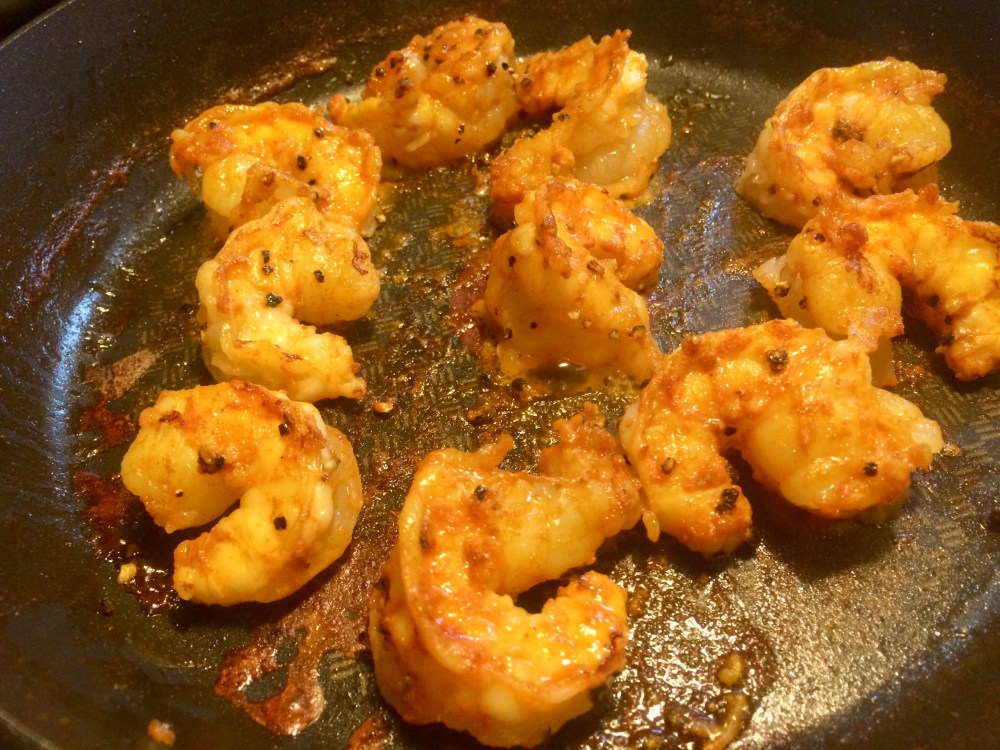 - Paista katkarapuja kuumalla, kuivalla pannulla noin minuutin ajan kummaltakin puolelta, kunnes ne ovat kauniin ruskeita.