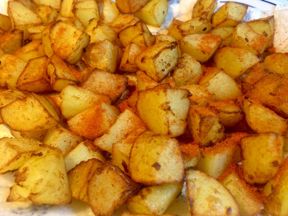 Patatas bravas, ”urheat perunat”, on tuttu herkku Espanjan matkoilta. Olemme valmistaneet niitä kotonakin aina vähän eri tavalla ja kokeilleet, mikä valmistustapa antaa parhaan lopputuloksen. Tällä kertaa friteerasimme keitetyt perunat kahteen kertaan, ja perunoista tuli mukavan rapsakoita.