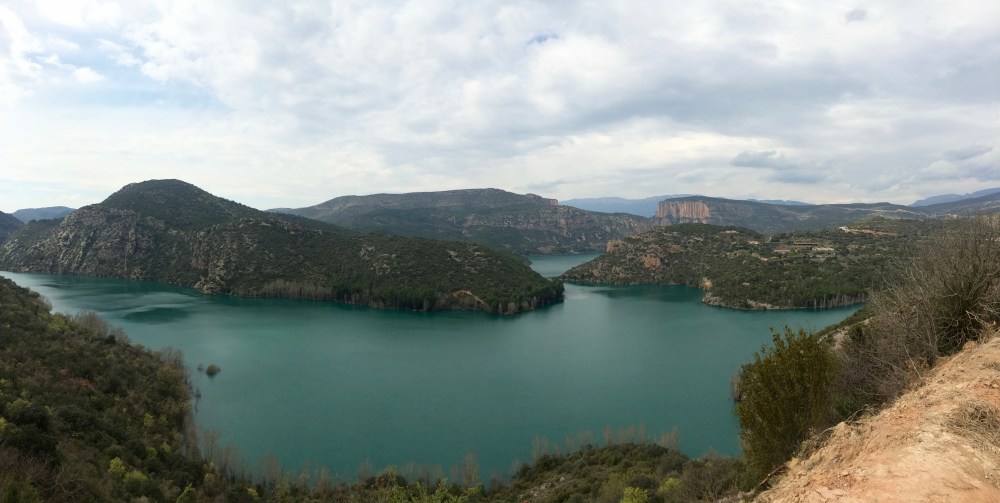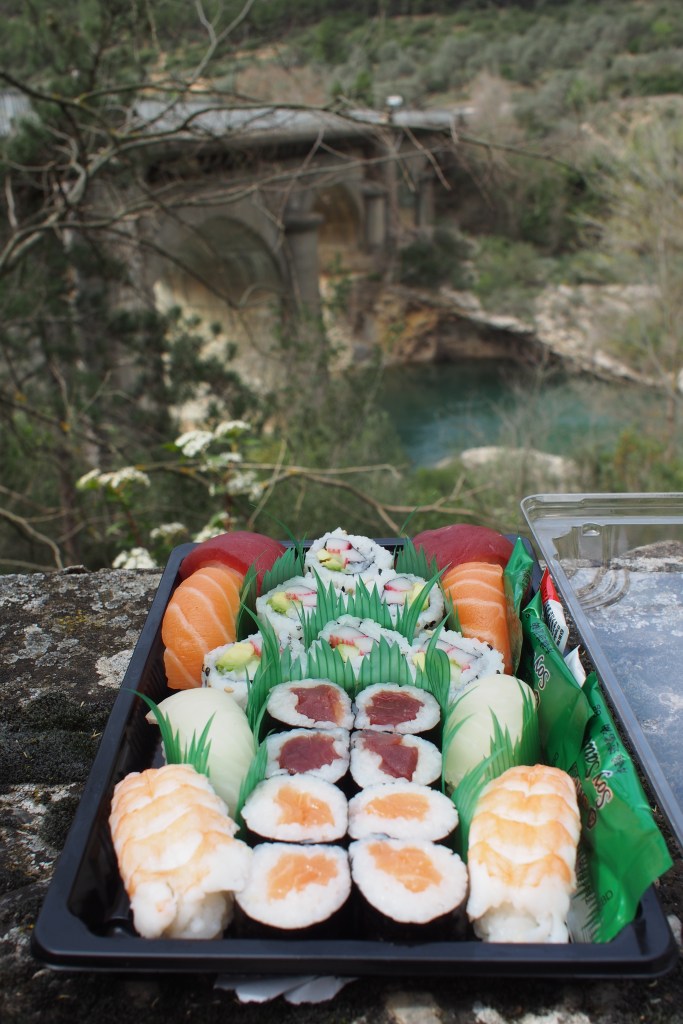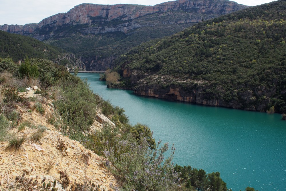 Joskus on kiva lähteä seikkailemaan ilman sen kummempia suunnitelmia. Katselimme yhtenä päivänä karttaa ja etsimme vuoristoisen näköistä aluetta lähietäisyydeltä. Camarasan alue näytti kiinnostavalta, joten hyppäsimme autoon. Pysähdyimme Lleidassa, ostimme eväitä ja jatkoimme kohti vuoristoa. Löysimme joen varrelta kauniin pysähdyspaikan ja jäimme syömään eväitä sillanpieleen.