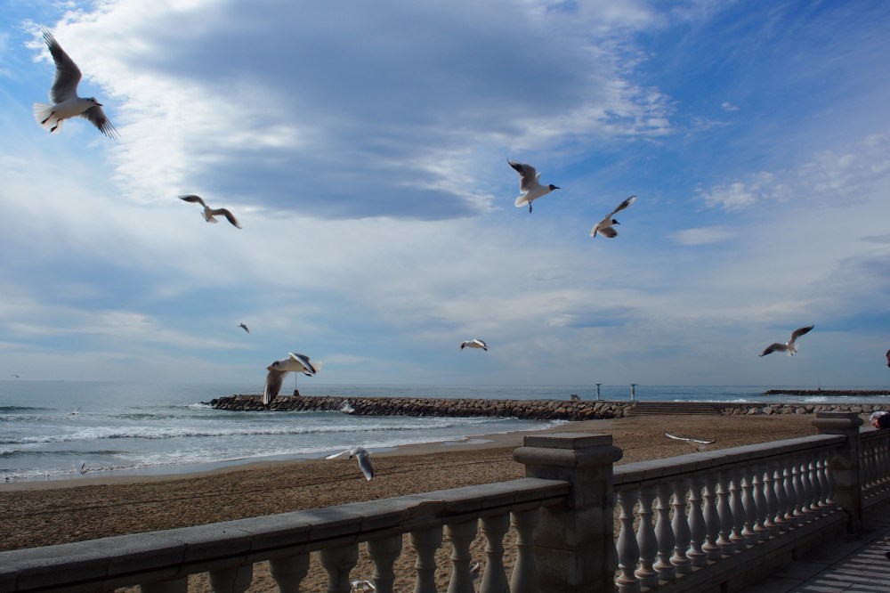 Sitgesin rantakaupungissa meno olikin sitten rennompaa. Lämpötila hipoi kahtakymmentä, ja paidattomat nuoret englantilaismiehet pelasivat rantalentopalloa. Uskaliaimmat kävivät kastautumassa meressäkin.