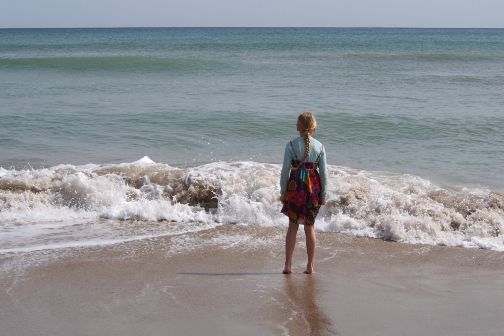 Meren rannalla oli rauhallista helmikuussa, aallot löivät rantaan isoina pärskeinä. Villikkotyttäreni heitti sukat ja kengät rantahiekalle ja kirmasi aaltoihin ilakoimaan. Mustaan talvipalttooseen tiukasti kääriytynyt mummo katseli hänen touhujaan paheksuvasti suu mutrulla ja antoi lopulta kelvottomien suomalaisvanhempien kuulla kunniansa.