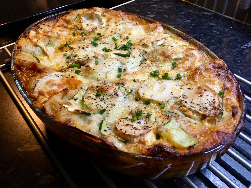 Juustoinen kasvislasagne