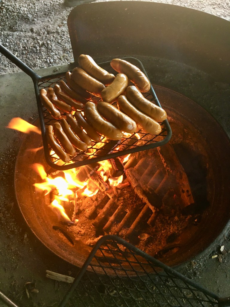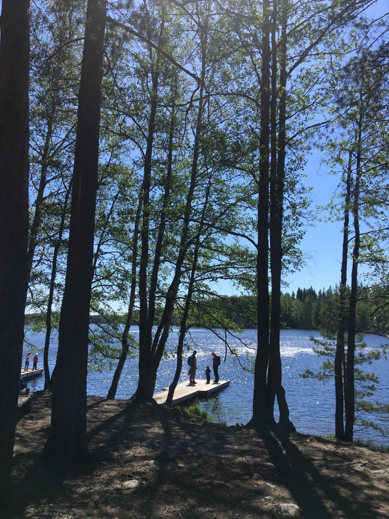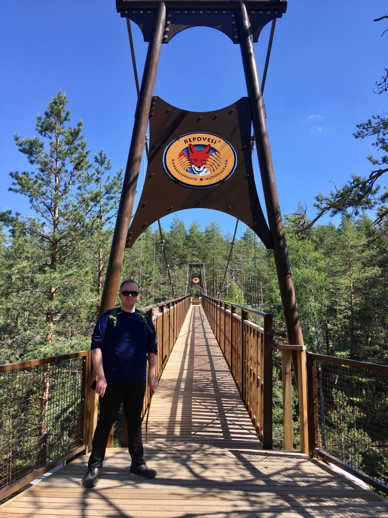 Sillan toisella puolella on hieno levähdyspaikka, jossa voi paistaa makkaraa tai vaikka pulahtaa uimaan kirkasvetiseen järveen. Sillan lähistöllä on myös leiriytymispaikka lyhytaikaista telttailua varten. Meidän teinit kävivätkin jo suunnittelemaan seuraavaksi telttaretkeä Repovedelle.