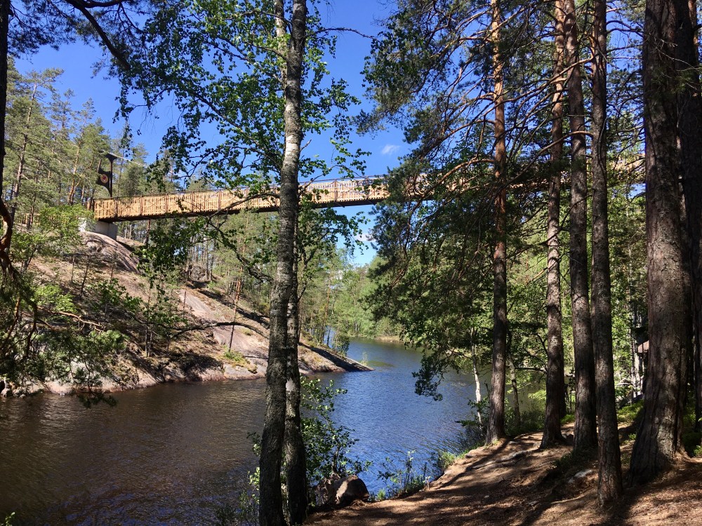 Sopivan pituinen matka minulle näin alkuun oli Lapinsalmen riippusillan reitti, joka on noin kilometrin pituinen suuntaansa. Reitti kulkee upeissa kalliometsämaisemissa Kapiaveden ylittävälle riippusillalle. Vanha silta romahti muutama vuosi sitten, ja viime syksynä paikalle valmistui upea, vankkatekoinen pylonisilta. Vanhan sillan ylitys oli aina jännittävä paikka, koska silta huojui kävellessä. Uusi silta pysyi nyt tukevasti paikallaan, ja kävellessä pystyi paremmin keskittymään myös maisemien ihailuun.
