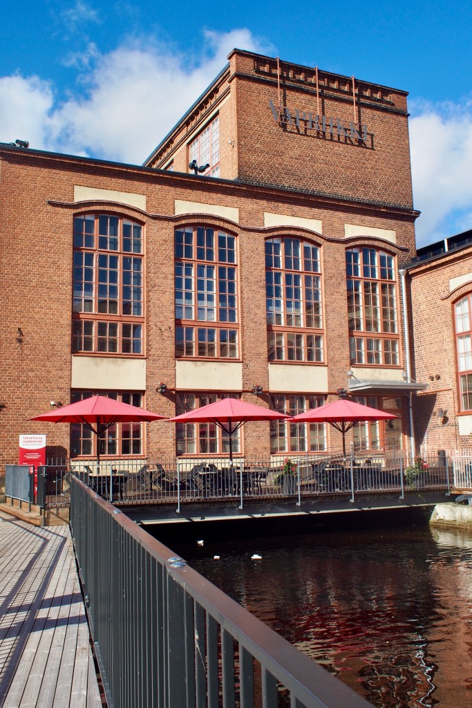 Jätimme auton parkkiin museokeskus Vapriikin tienoille. (Vapriikki on muuten yksi lempimuseoistani, siellä saa vaikka koko päivän kulumaan helposti.) Vapriikin ravintolan terassilta pääsee Vapriikinraitille, ja sitä pitkin Satakunnansillan kupeessa olevaan Työnpuistoon, tai toiseen suuntaan kohti Näsijärveä. Kävimme ensin kääntymässä Työnpuistossa, ja jatkoimme sitten matkaa raitin toiseen päähän Palatsinraitin sillalle, josta näkee vanhat tehdasrakennukset koko komeudessaan.