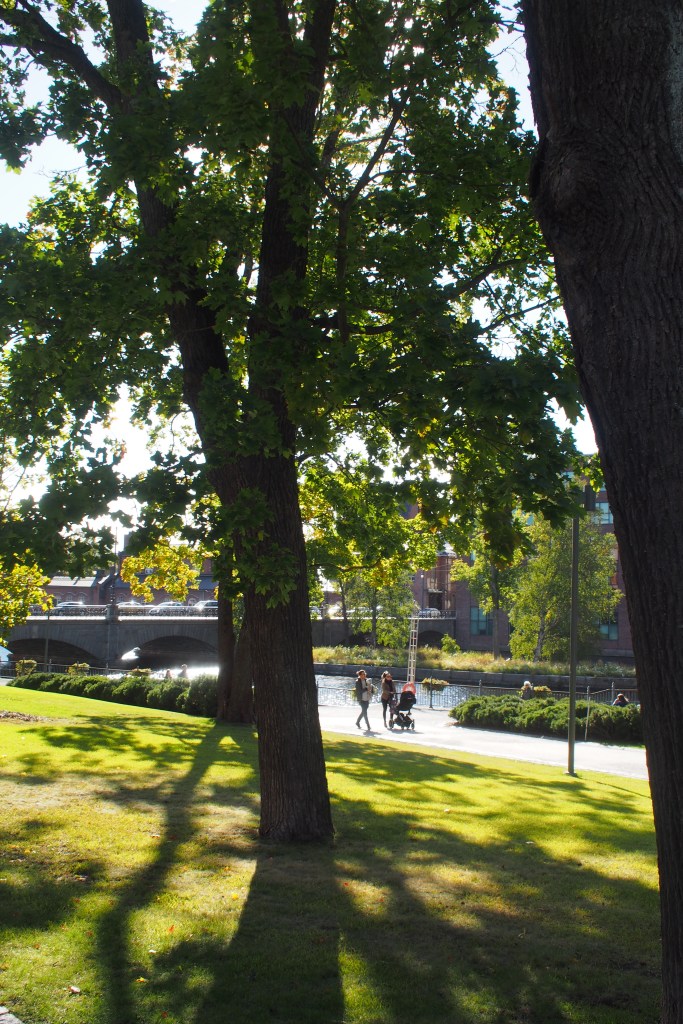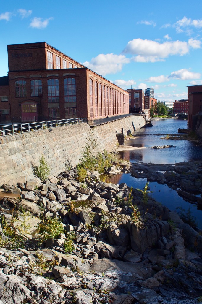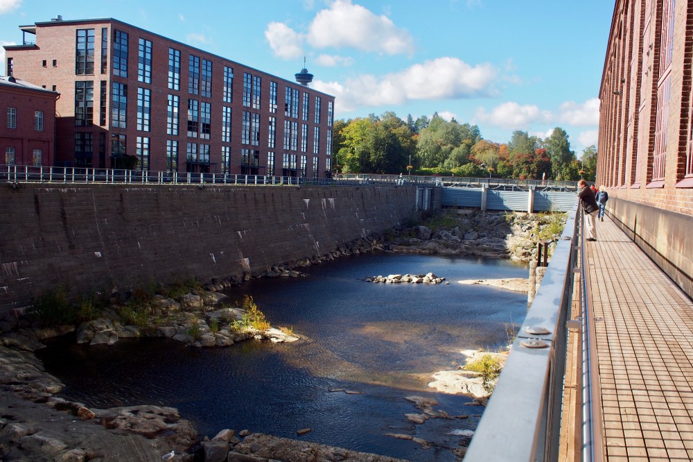 Nykyään käyn kyllä usein Tampereella, mutta lähinnä asioilla. Tänä sunnuntaina otin kuitenkin oikein asiakseni viedä perheen sunnuntaikävelylle Finlaysonin alueelle äidin nuoruusmaisemiin. Halusin katsastaa kosken yllä Tampellan seinää pitkin kulkevan uuden kävelyreitin, Vapriikinraitin, ennen kuin se suljetaan talveksi syyskuun lopussa.