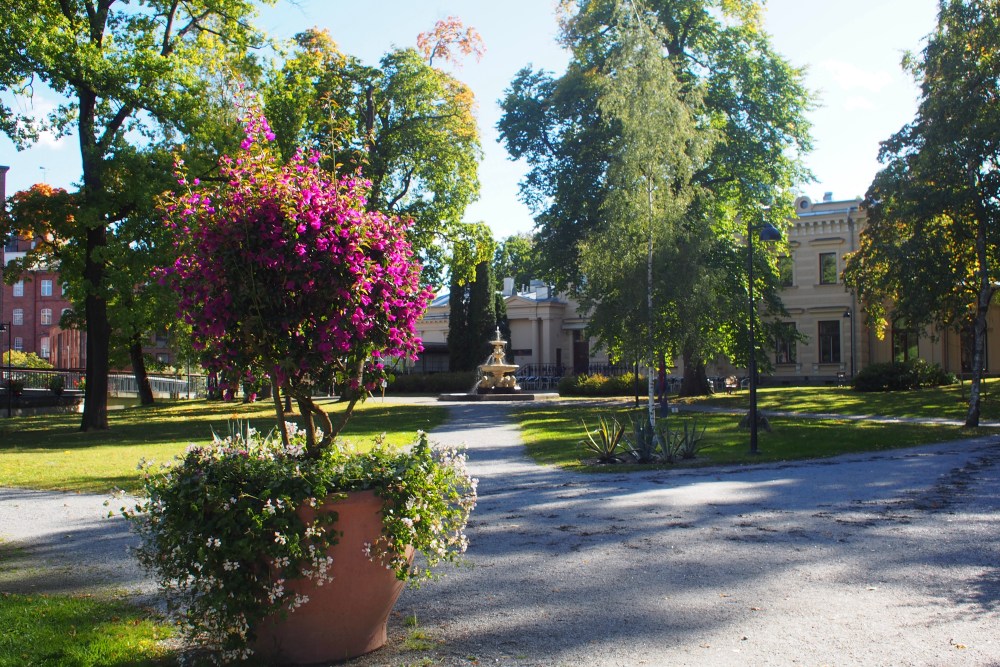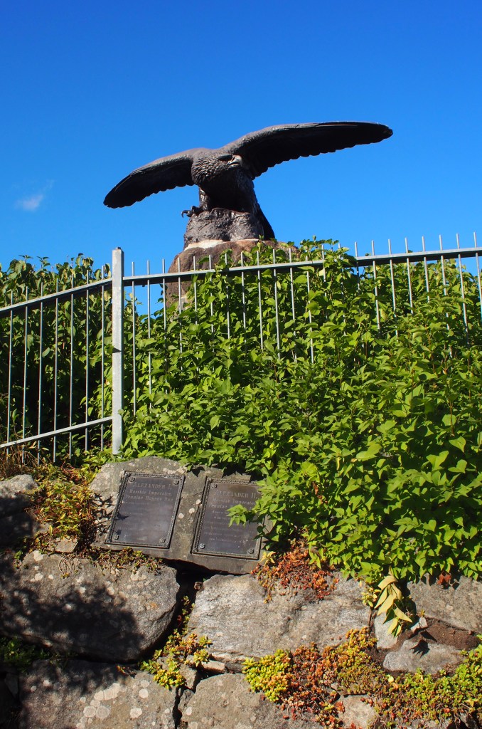 Sillalta reitti vie suoraan Finlaysonin palatsin puistoon. Viehättävän puiston tunnelma oli kuin menneiltä ajoilta, vesi ryöppysi suihkulähteestä ja suuri rautainen kotka vartioi palatsia pienen kukkulan päältä. Kotkan juurella on muistolaatat keisari Aleksanteri I:lle ja II:lle, sillä Aleksanteri I vieraili paikalla vuonna 1819. Hän ihastui kosken kuohuihin niin paljon, että myönsi skotlantilaiselle James Finlaysonille oikeudet tehtaan perustamiseksi.