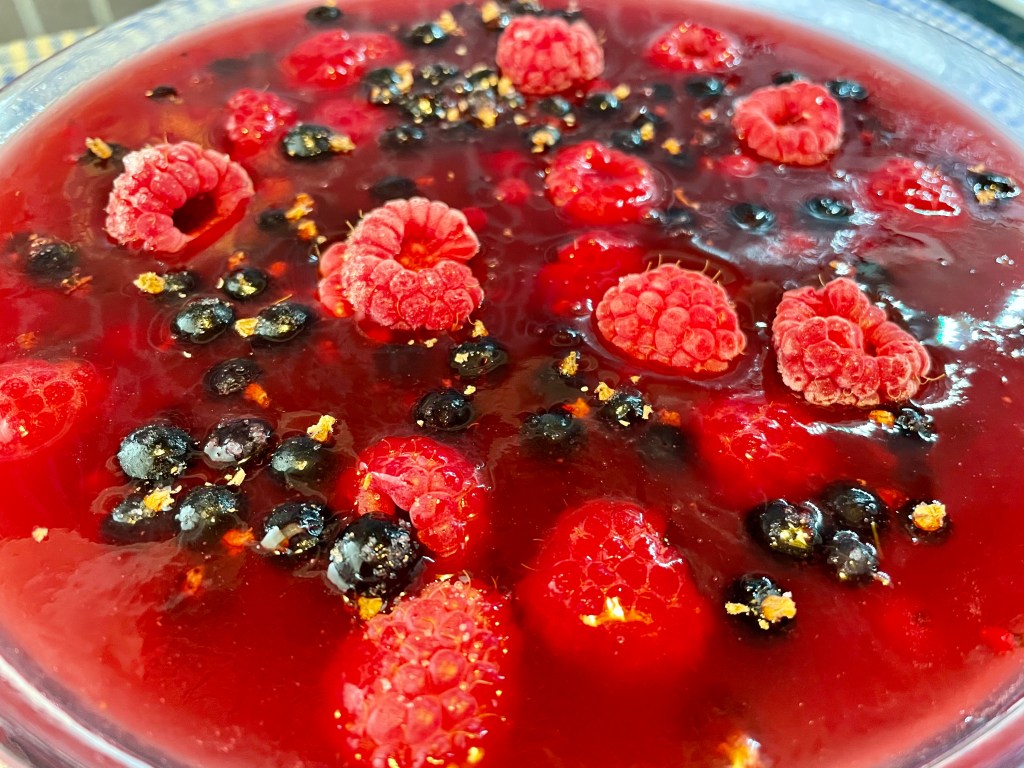 - Laita jäiset marjat kulhoon ja kaada kuuma kiisseli niiden päälle.
