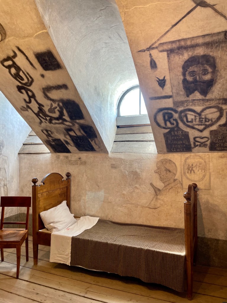 Yliopistolla pääsimme myös suomenkieliselle yksityiskierrokselle rakennuksen vintille, jossa toimi aikaisemmin yliopiston putka. Opiskelijat olivat joutuneet sinne esimerkiksi palauttamattomien kirjaston kirjojen takia (2 päivää), naisen solvaamisen takia (4 päivää) tai kiroilun takia (6 – 8 päivää). Mietimme, että tämä voisi olla hyvä käytäntö nykyäänkin…