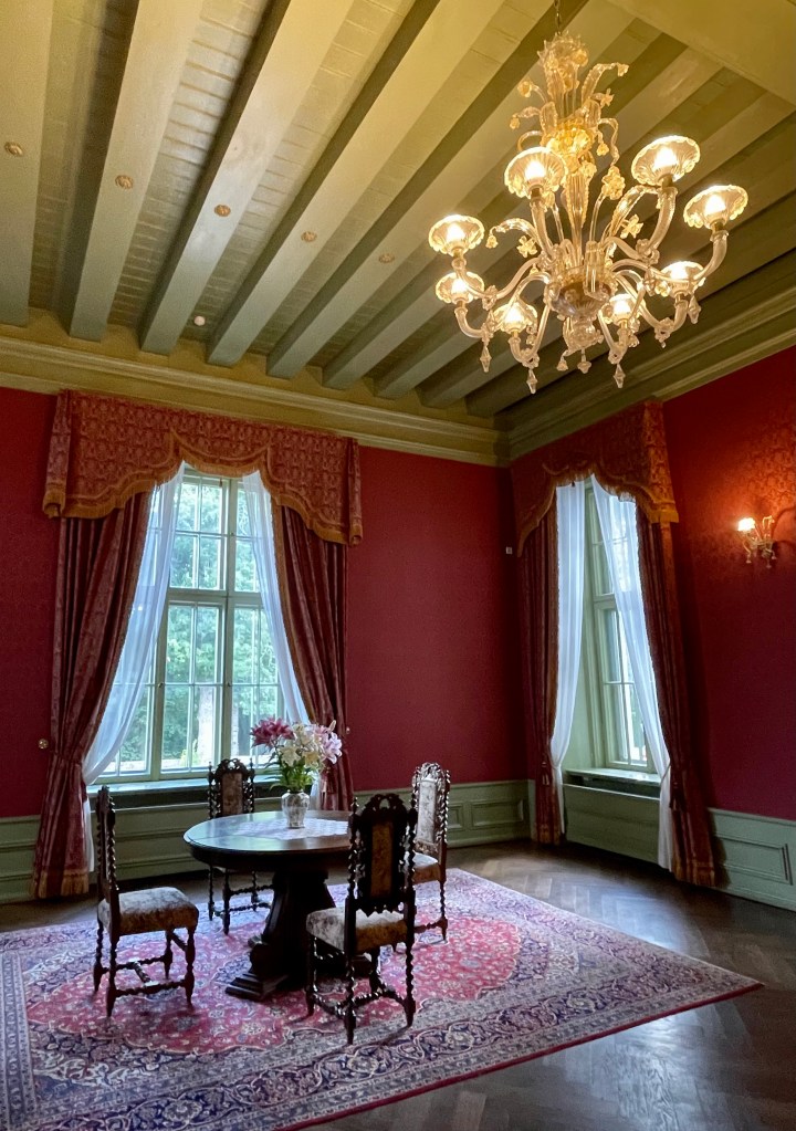 Aloitimme Sipulitien kierroksen upeasta Alatskiven linnasta, joka sijaitsee noin 40 km päässä Tartosta. Vannoutuneena Downton Abbey -fanina tunsin heti siirtyneeni suoraan vuosisadanvaihteen Englantiin, eikä ihme. Linnan rakennuttanut paroni Nockeln oli ihastunut Skotlannin matkallaan Balmoralin palatsiin, ja hän halusi rakentaa perheelleen kodiksi kopion tästä kuningatar Viktorian kesäpalatsista.