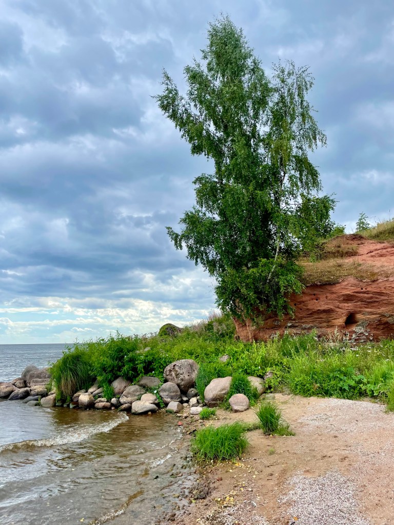 Jatkoimme Sipulitien kierrosta Kallasten pikkukaupunkiin, joka on tunnettu korkeasta hiekkakivisestä rantatörmästään. Rantatörmä on kilometrin pituinen ja korkeimmillaan yhdeksän metrin korkuinen, ja aaltojen muovaamissa luolissa on tarinoiden mukaan sijainnut paholaisen paja. Me emme tällä kertaa törmänneet paholaiseen, mutta ihastelimme törmän yllä lenteleviä pääskysiä, jotka olivat rakentaneet hiekkakiveen hienon kerrostalon itselleen.