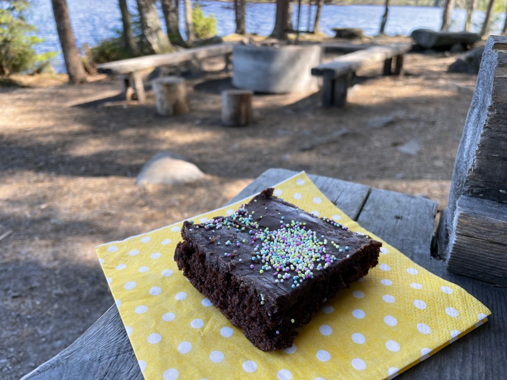 Kävin viikonloppuna metsäretkellä siskoni, kummipoikani ja mieheni kanssa. Leivoimme retkievääksi suklaapiirakkaa klassikko-ohjeella, joka on talletettu kuuluisaan äidin sinikantiseen reseptikirjaan. Siellähän ne parhaat ohjeet ovat, sisko ei nimittäin kelpuuta mitään muuta suklaapiirakkaa kuin tätä.