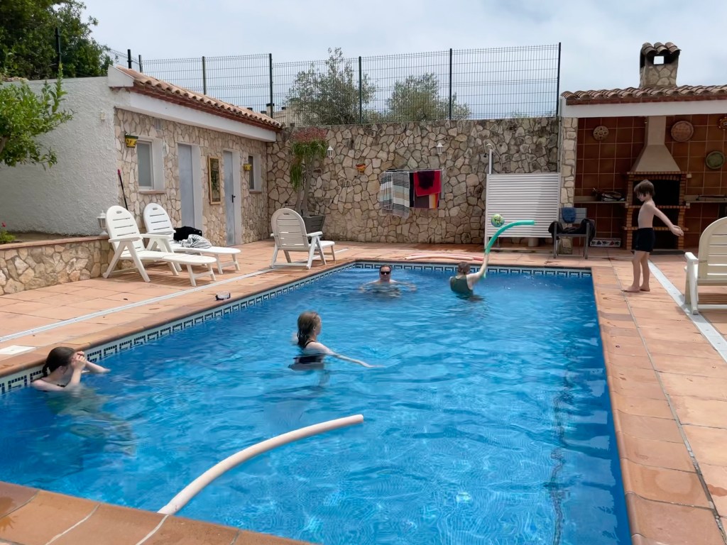 Olin varannut meille L’Ampollasta mukavan huvilan nimeltään La Caseta de la Muntaya, jossa oli hienosti tilaa meidän kymmenhenkiselle seurueellemme. Loput porukasta lensi Helsingistä Barcelonaan ja saapui sieltä iltamyöhällä vuokra-autolla.