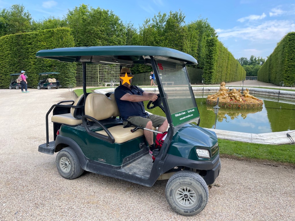 Golfkärryn vuokra on 42 € tunti (kesällä 2024), ja 15 minuutin ylitys maksaa 10,50 €. Kannattaa siis vilkuilla välillä kelloa, jos ei halua kuluttaa koko matkabudjettia Versailles’n puutarhassa.