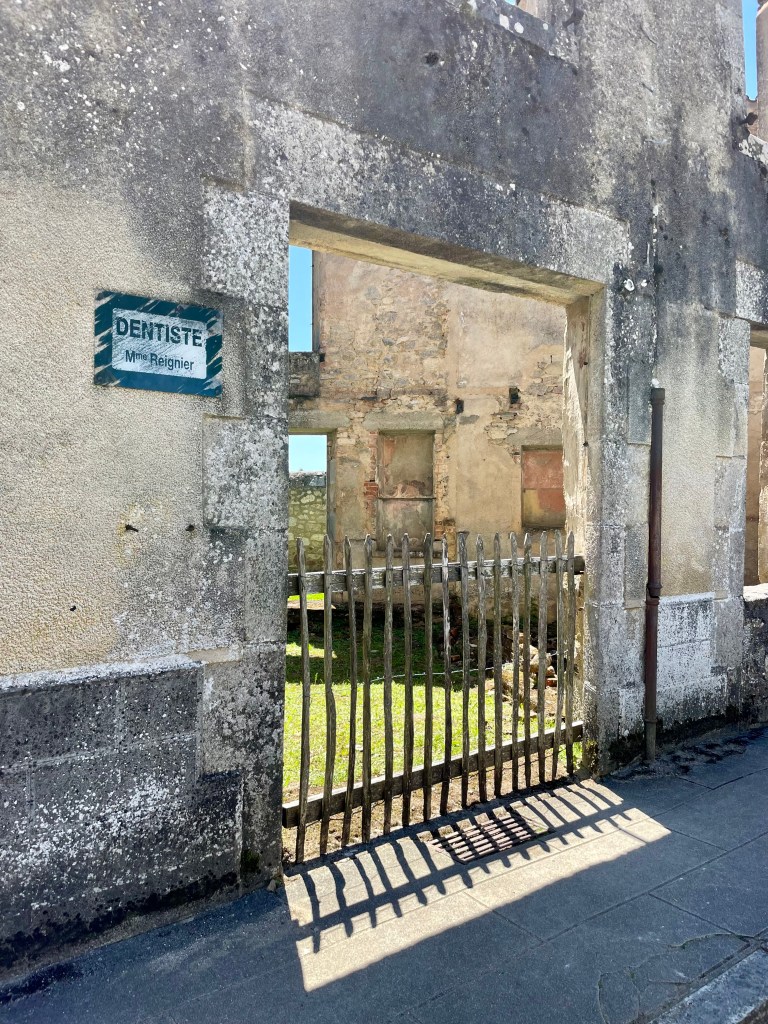 Oradour-sur-Glanen järkyttävistä tapahtumista oli kulunut lähes päivälleen 80 vuotta, kun astuimme sisään kylän portista. Yksinkertainen kyltti portinpielessä kehotti vierailijaa: ”Muista”.