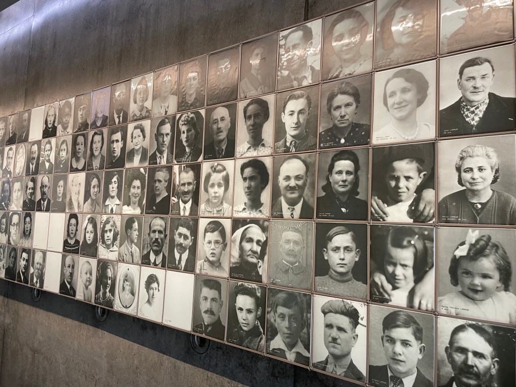 Poistuimme kylästä takaisin vierailijakeskukseen, jossa meidät hyvästelivät kylän asukkaiden muotokuvat, ja kaiuttimista kuului jokaisen uhrin nimi ja ikä vuoronperään.